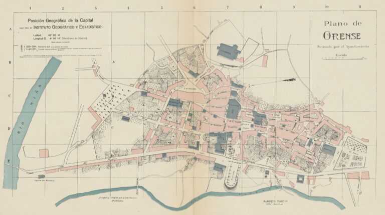 This map of the city of Orense (Ourense, its official name in Galician) was published in 1918 in Barcelona by Alberto Martín, with information provided and reviewed by the city council. It is currently part of the map library of the National Geographic Institute.