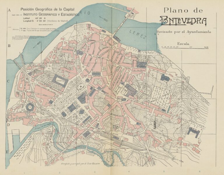 Map of the city of Pontevedra, drawn by Benito Chías y Carbó, edited by Sixto Vizcaino and published by Alberto Martín in 1918. It is currently part of the Map Library of the National Geographic Institute.