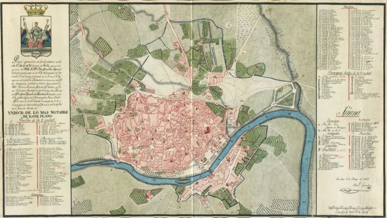 This map, published in 1827 by Manuel Spínola de Quintana, is the first non-military map to depict the urban area of Seville and its immediate surroundings.