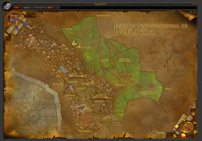 This map, created by Santiago Reyes in 2023, represents Bolivia. The illustration is part of the project to represent the entire Latin America in the style of World of Warcraft.