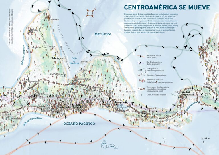 This map, created by Mir Rodriguez Lombardo y Gabriela Fenner in 2023, it was published in the magazine Centroamérica.