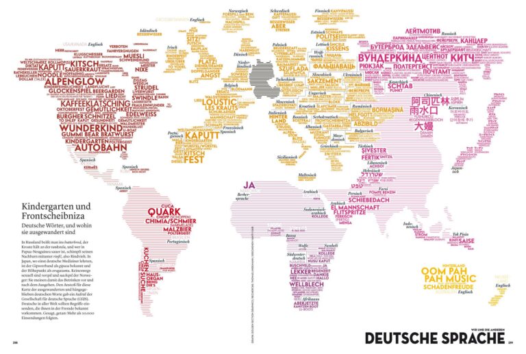 The illustration shows the different words that the German language has exported to non-German-speaking countries around the world (Germany, Switzerland, and Austria). The author shows the words that are used in different countries and not in different languages. For example, the use in Chile of cake It is very widespread, but not so much in other Spanish-speaking countries.