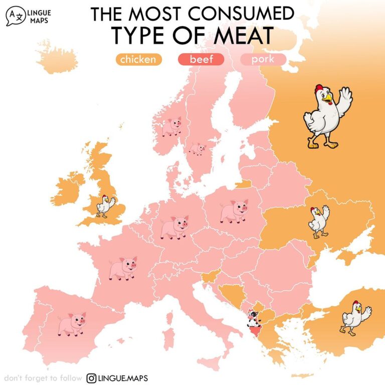 This map, created by Language Maps in 2024, shows the consumption of which type of meat is predominant in each European country.