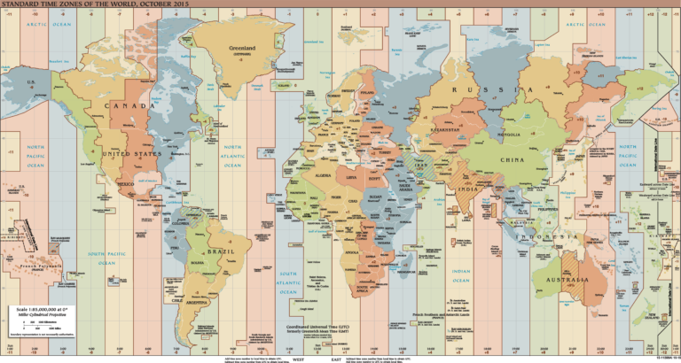 This map, published by the CIA in October 2015, shows the different time zones that exist around the world.