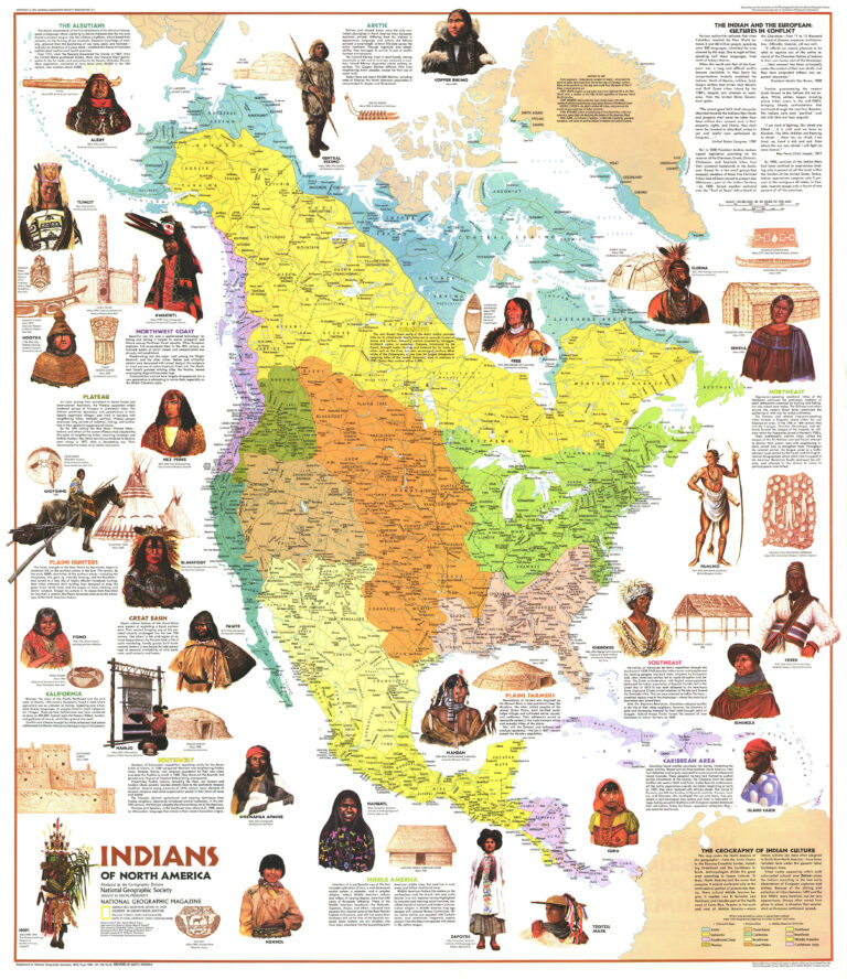This ethnic map, designed by George Stuart and published by National Geographic in 1972, shows the different native peoples of North America prior to 1492.