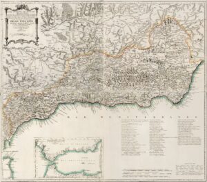 The map, with an apparent educational purpose, shows the region's terrain, as well as the main cities, transport networks and borders that existed before the Japanese invasion. Its design allowed it to be hung in classrooms for study purposes.