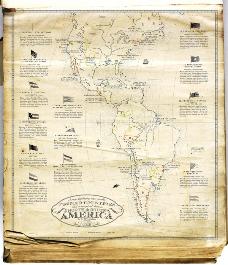 This map, created by Anders Kvernberg In 2018, it represents some of the countries that existed briefly on the American continent between the colonial period and the modern states with their current borders.