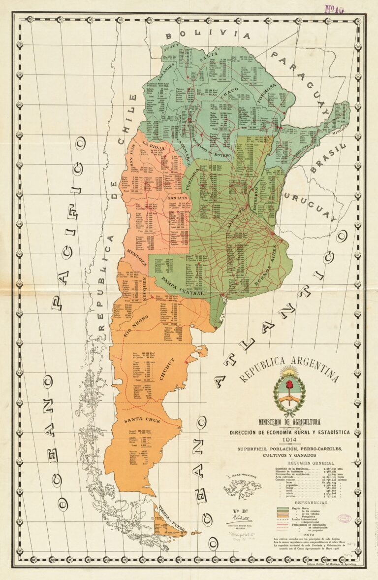 This map was published in 1914 by the Ministry of Agriculture, Directorate of Rural Economy and Statistics of Argentina.