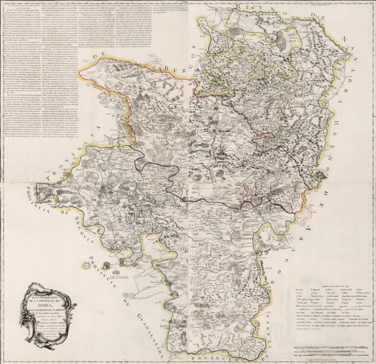 This map was created by Spanish cartographer Tomás López de Vargas Machuca in 1783 and published posthumously by his sons in the “Geographical Atlas of Spain” from 1804. The map depicts the province of Soria with the territorial boundaries prior to Javier de Burgos's reform of the provincial administration in 1833.