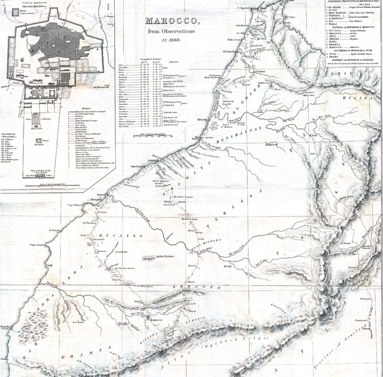 This map of Morocco was published by John Murray in 1831 for the Journal of the Royal Geographical Society of London, with observations obtained throughout the year 1830.