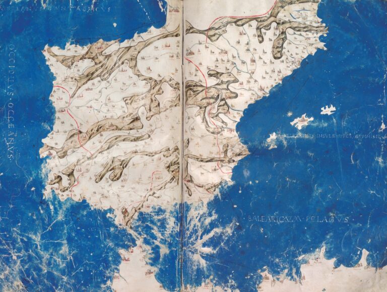 Joan Margarit y Pau was a humanist and ambassador for the Catholic Monarchs. He designed this map in Italy in the mid-15th century, and it surpasses in accuracy other maps of the Iberian Peninsula that accompanied manuscripts of Geography throughout Europe, mainly in Italy. Given the details, it seems that Margarit was inspired by a portolan chart from the Catalan-Mallorcan school, as it includes a good definition of the coasts, as well as measurements between various points.