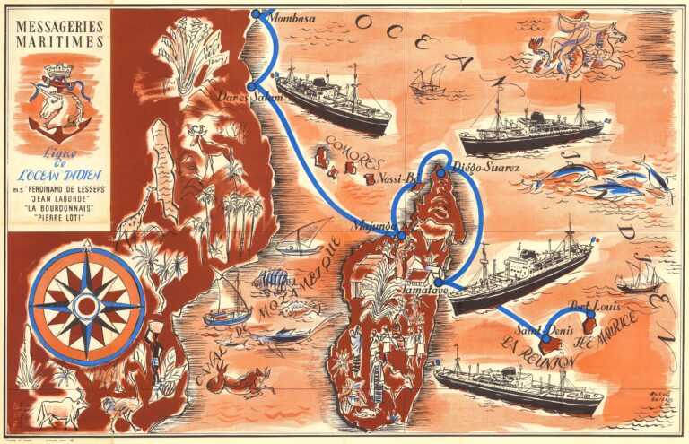 Messageries Maritimes began operating between 1951 and 1952 with four ocean liners named Ferdinand de Lesseps, Jean Laborde, La Bourdonnais and Pierre Loti. In addition to transporting goods, these ships were also equipped with well-appointed cabins for use by the French upper class on their trips to the colonies of south-east Africa.
