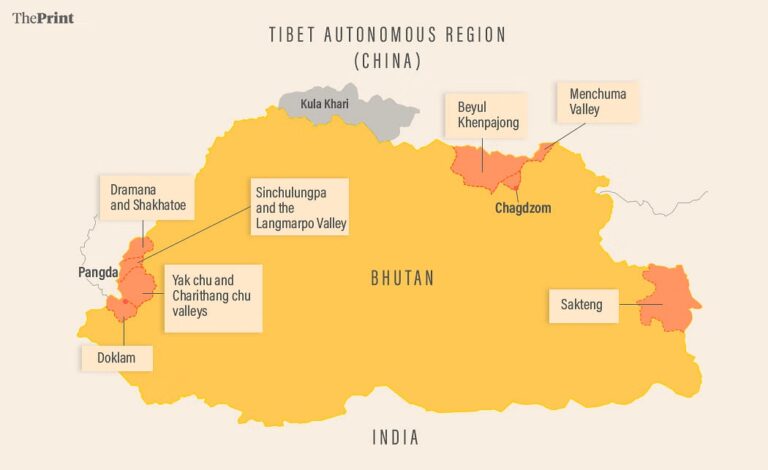 This map, drawn by Prajna Ghosh and published in ThePrint in 2024, shows China's territorial claims in Bhutan.