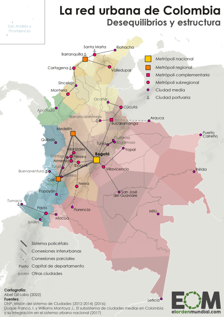 This map, created by Abel Gil Lobo for the website El Orden Mundial, represents Colombia's urban network.