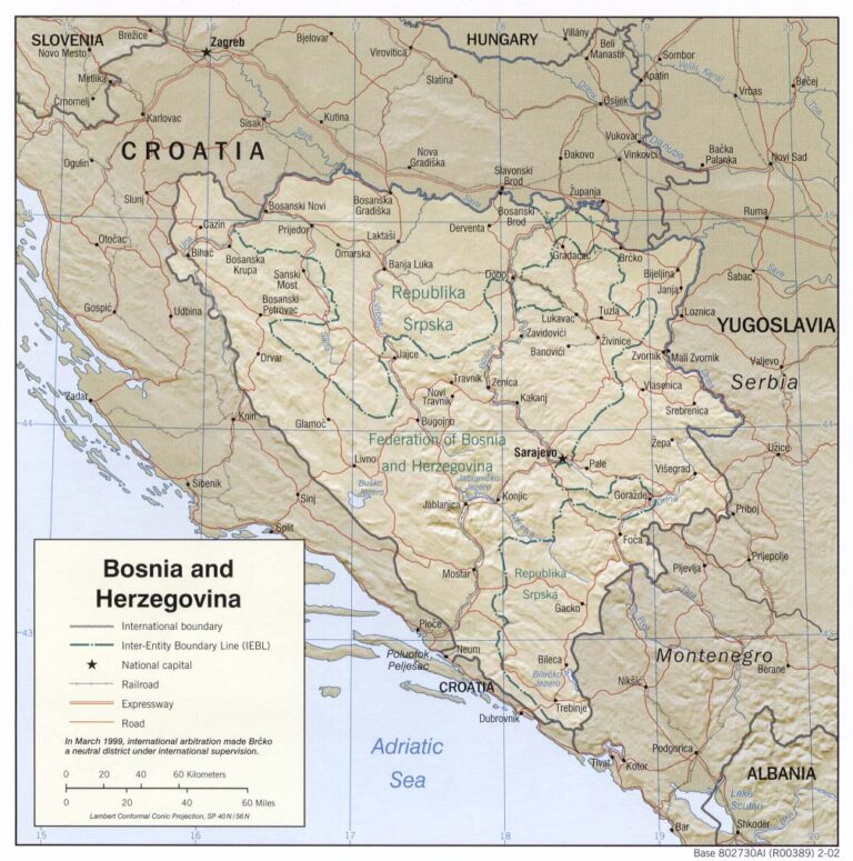 This map of Bosnia and Herzegovina was published by the CIA in 2002 and is currently held in the cartographic collection at the Perry-Castañeda Library (PCL) at the University of Texas at Austin, United States.