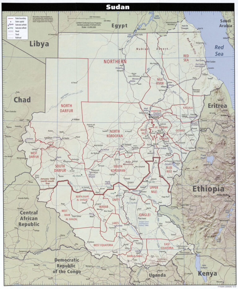 This map of Sudan was published by the CIA in 2007 and is currently held in the cartographic collection at the Perry-Castañeda Library (PCL) at the University of Texas at Austin, United States.