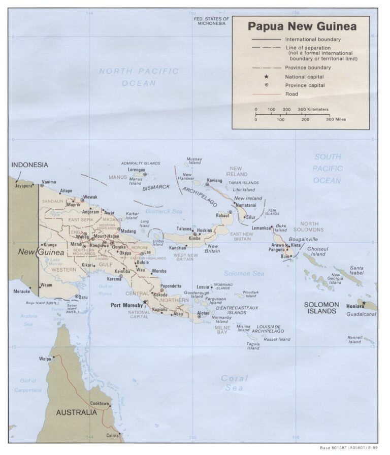 This map of Papua New Guinea was published by the CIA in 1989 and is currently held in the map collection at the Perry-Castañeda Library (PCL) at the University of Texas at Austin, United States.