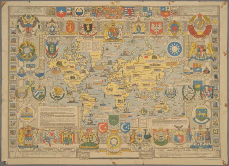 This map, created by L. G. Bullock and published by John Bartholomew & Son in 1947, is an example of the weight and importance of the United Nations at that time, selling itself as a guarantor of peace and prosperity in the world after the end of the Second World War.