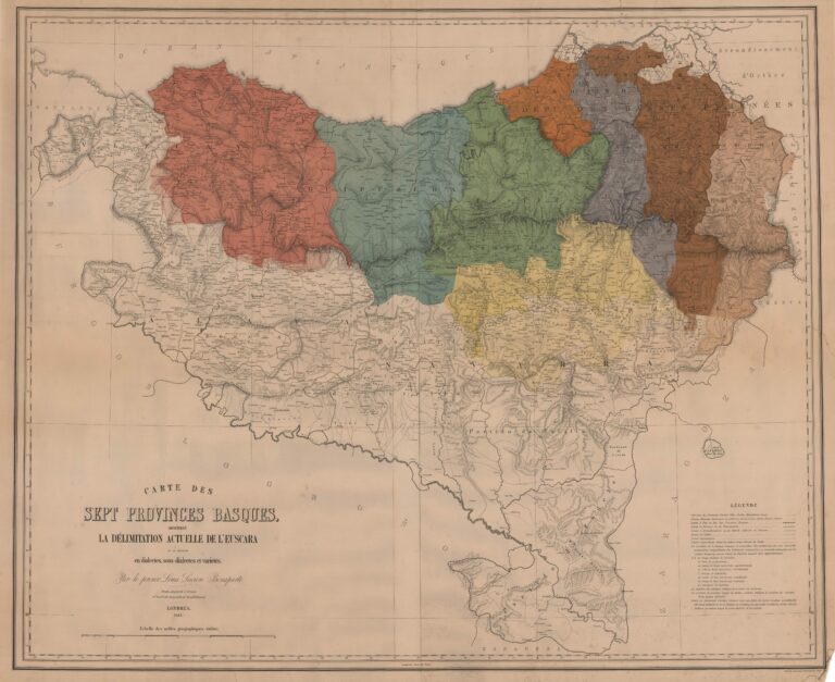 The dialects of Basque in the seven Basque provinces (1863) This map was created by French philologist Louis Lucien Bonaparte and published by Stanfords in London in 1863. Louis... Milhaud 2024-09-20