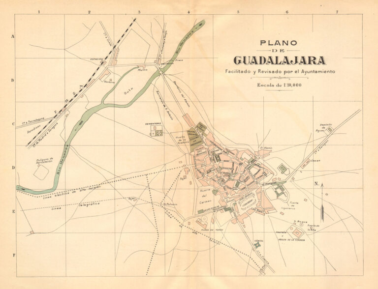 This map of the city of Guadalajara, in Castilla-La Mancha, Spain, was published in 1910 in Barcelona by Alberto Martín,...