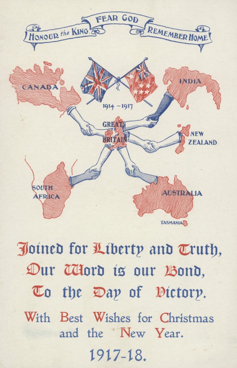 This postcard was printed in Australia for use in Christmas cards in 1917, during the First World War. ....