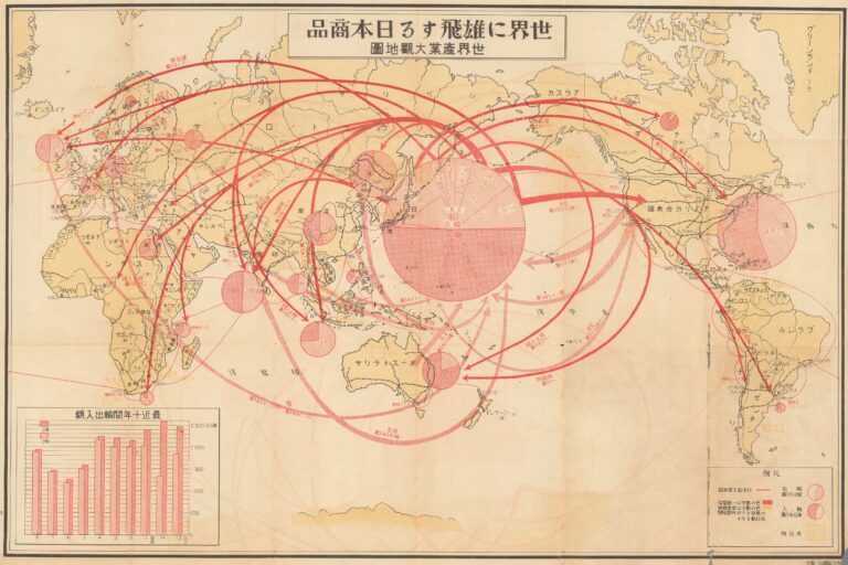 This map, published by Kabushiki-gaisha Chūōkōron-sha, shows Japan's trade relations in 1934. Kabushiki-gaisha Chūōkōron-sha was a...
