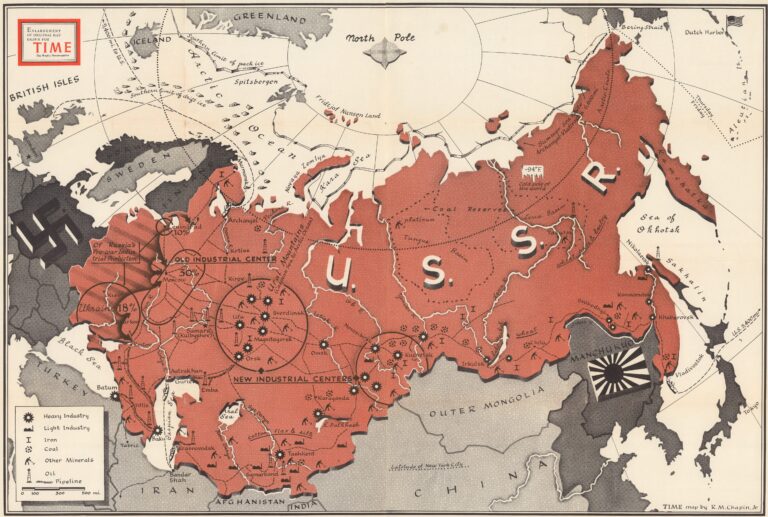 This propaganda map, drawn by Robert M. Chapin and published in Time magazine in November 1941, shows the Soviet Union .....