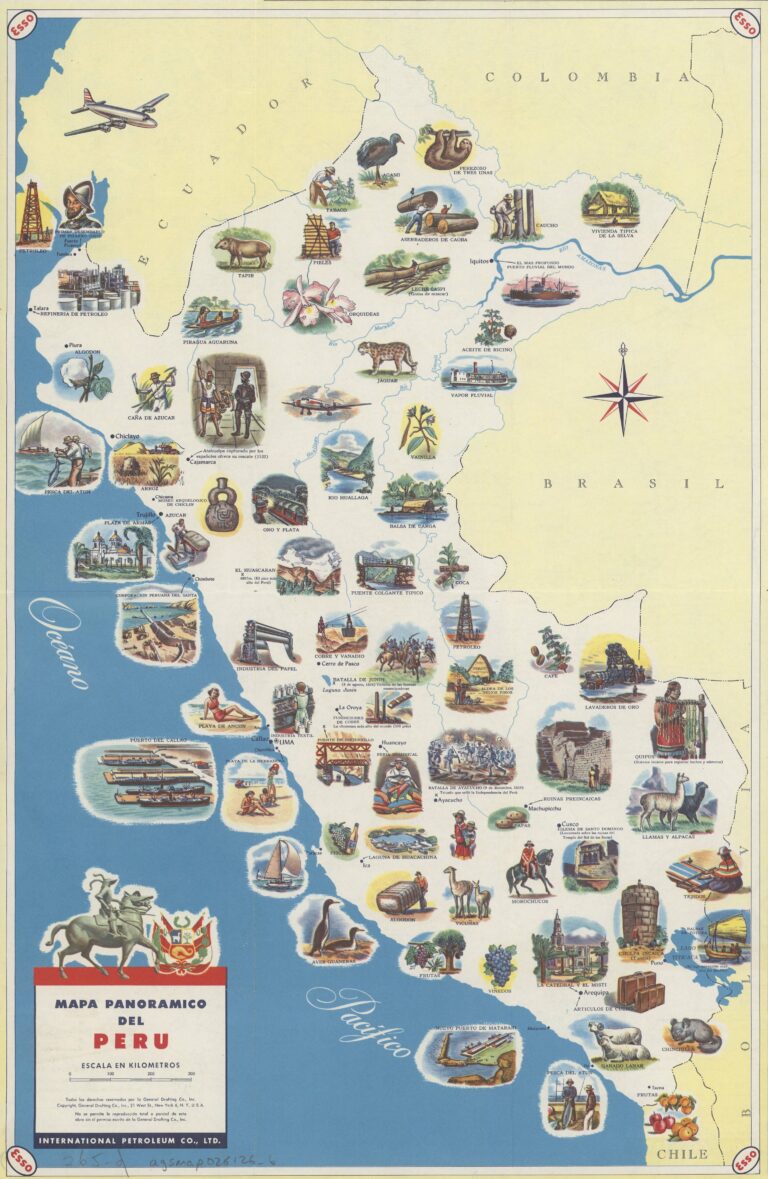 This pictorial map of Peru was published in 1950 as part of a road map of Peru edited by...