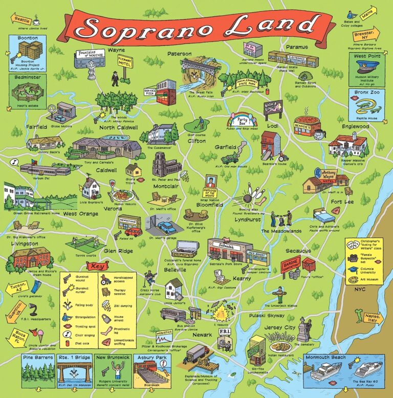 This map was drawn by illustrator Robert Sikoryak in 2002 for a special edition of the American magazine TV Guide...