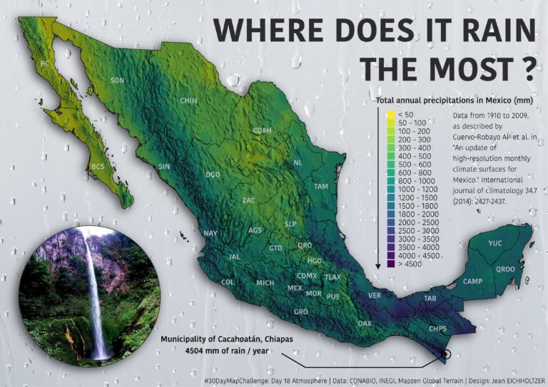 This map was published by Jean Eichholtzer in 2023 as part of the #30DayMapChallenge initiative. The map shows annual rainfall in each region...