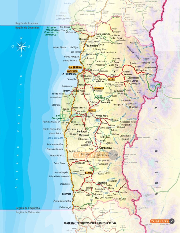 This map, published by Compass Maps in 2023, shows the Coquimbo region of Chile. The map shows the areas where the...