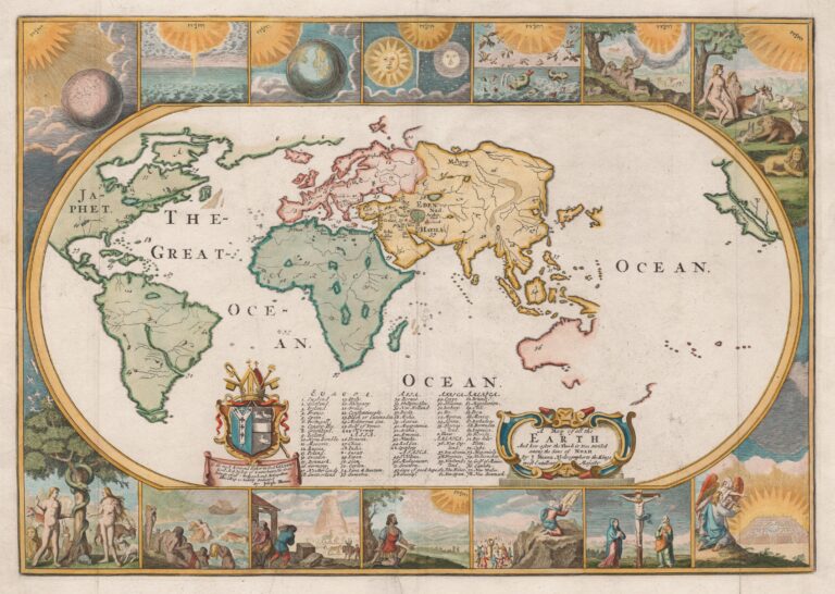 This map, published in 1681 by the Englishman Joseph Moxon, shows the Earth after the Flood and how it...