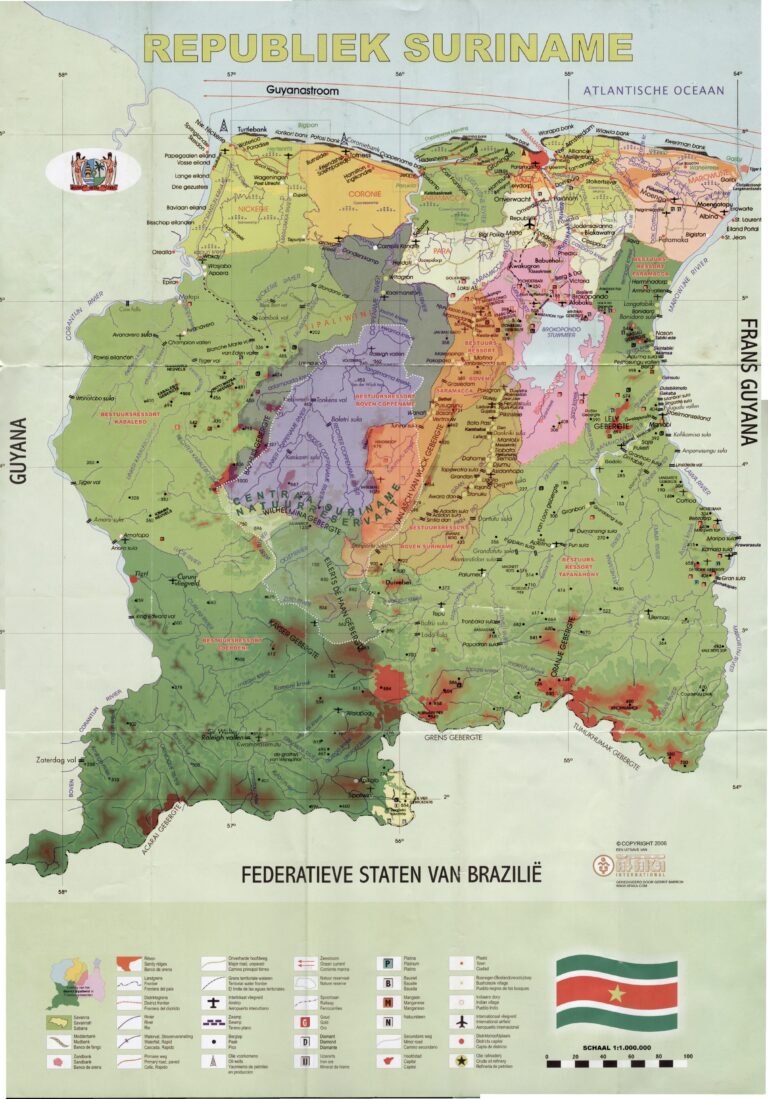 This map of Suriname was published in 2006 by Afaka International, under the supervision of Surinamese writer Gerrit Barron. The...