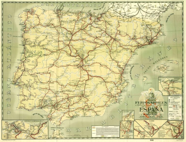 - Mapa de los ferrocarriles en explotación, construcción y proyecto en España y Portugal