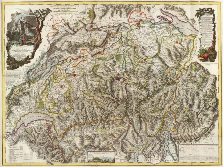 Este mapa, dibujado por el cartógrafo William Faden en 1799 y publicado dentro de su General Atlas de 1811, representa la confederación de cantones de Suiza, así como sus aliados y súbditos.