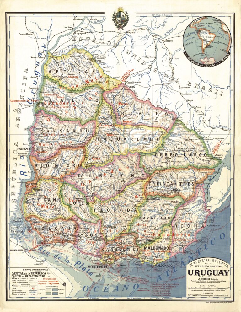 Este mapa fue creado originalmente por el cartógrafo francés Joseph Forest para el Ministerio de Educación de Francia. Dada su alta calidad, fue utilizado de forma extensiva en Uruguay y otras partes de Sudamérica.