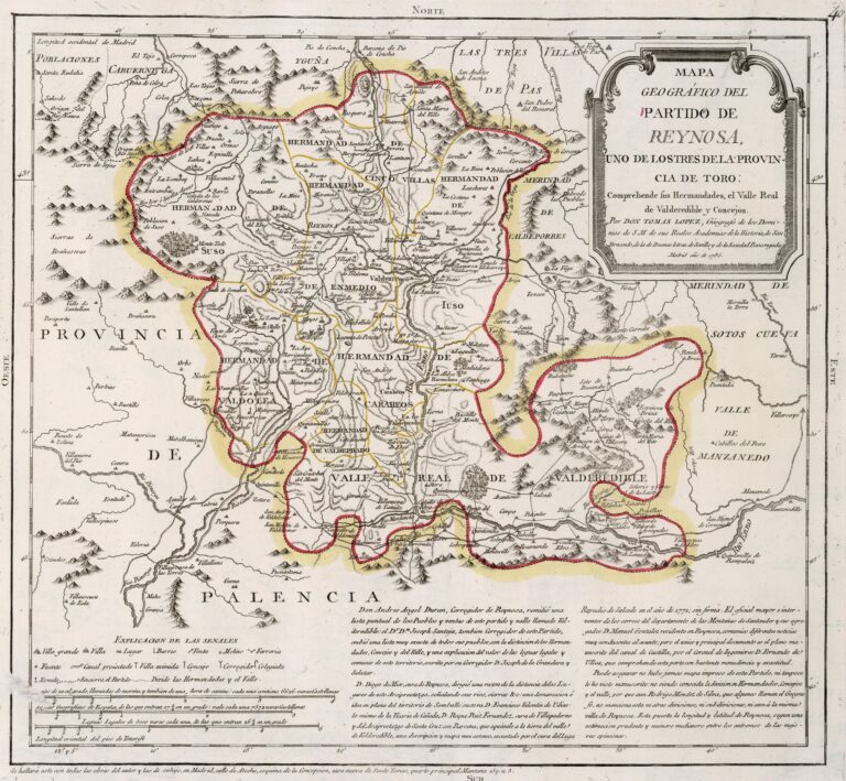 Este mapa fue creado por el cartógrafo español Tomás López de Vargas Machuca en el año 1785 y publicado póstumamente por sus hijos dentro del “Atlas Geográfico de España” de 1804. El mapa representa el partido de Reynosa con los límites territoriales antes de la reforma de la administración provincial de Javier de Burgos en 1833.
