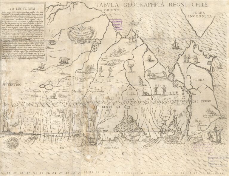 Este mapa, dibujado por el jesuita chileno Alonso de Ovalle en 1646, se publicó como parte de su obra Histórica relación del Reyno de Chile.