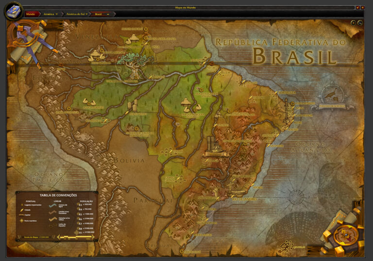 Este mapa, creado por Santiago Reyes en 2024, representa Brasil. La ilustración forma parte del proyecto para representar toda Latinoamérica en el estilo del World of Warcraft.