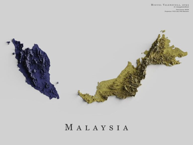 Mapa de relieve de Malasia, por Miguel Valenzuela (2021)