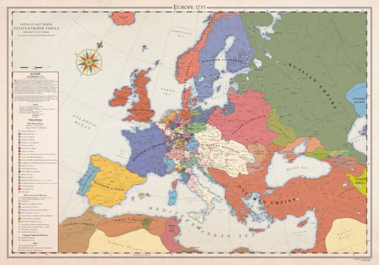 Este detallado mapa, creado en 2023 por Gustav Ståhlberg, muestra la situación política de Europa en el año 1733.
