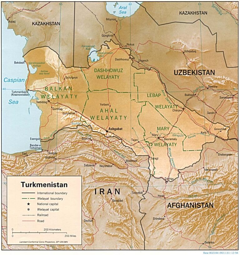 Este mapa de Turkmenistán fue editado por la CIA en 1994 y actualmente se mantiene en la colección cartográfica en la Perry-Castañeda Library (PCL) de la Universidad de Texas en Austin, Estados Unidos.