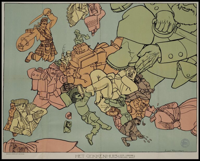 Este mapa satírico fue publicado en 1915 por Louis Raemaekers. En él, el artista neerlandés representa a los distintos países europeos como individuos caricaturizados y encajados en sus límites territoriales, a la par que miran y agreden a sus vecinos en una fiel representación de los enfrentamientos de la parte inicial de la Primera Guerra Mundial.