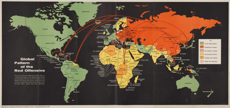 Este mapa fue publicado en 1962 por John Knox Jessup dentro de su libro Communism: The nature of your enemy (El comunismo: La naturaleza de tu enemigo). Este libro fue publicado por la editorial de la Revista Time y seguía la temática recurrente propagandista de la revista, dentro del contexto de la Guerra Fría.