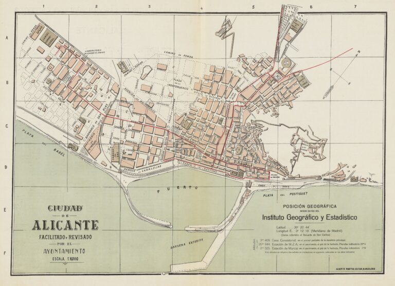 Plano de la ciudad de Alicante publicado en 1918 en Barcelona por Alberto Martín, con la información facilitada y revisada por el Ayuntamiento de la ciudad. Actualmente forma parte de la Cartoteca del Instituto Geográfico Nacional.