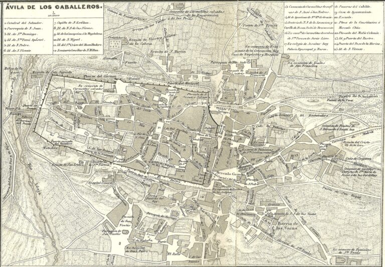 Mapa de la ciudad de Ávila, conocida como Ávila de los Caballeros, publicado en 1864 por Francisco Coello. Este plano forma parte de un mapa de la provincia de Ávila de mayor tamaño, en cuyos bordes se encuentran las principales localidades de la misma. Se trata de una de las primeras representaciones a escala y con cierta precisión de la ciudad.
