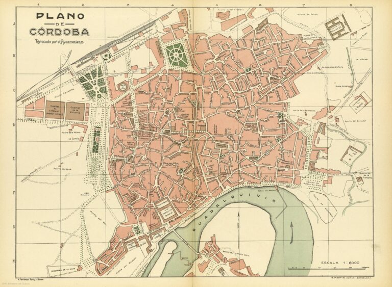 Plano de la ciudad de Córdoba publicado a comienzos del siglo XX en Barcelona por Alberto Martín, con la información facilitada y revisada por el Ayuntamiento de la ciudad.