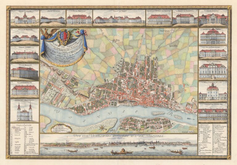 Este mapa de Varsovia fue dibujado por el cartógrafo italiano Giovanni Antonio Rizzi Zannoni en 1772, basado en un plano previo publicado por Pierre Ricaud de Tirregaille en 1762.