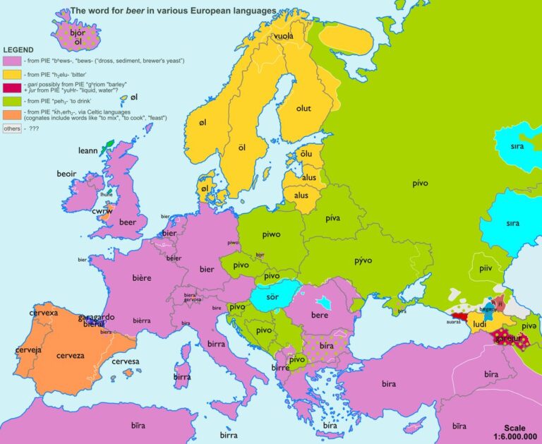 Este mapa, realizado por el usuario de reddit Bezbojnicul en 2013, muestra la forma de decir cerveza en los distintos idiomas hablados…