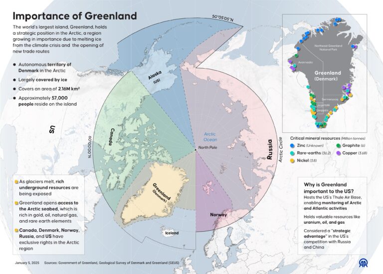 Ese mapa, publicado por la agencia turca Anadolu en 2026, muestra la importancia geopolítica de Groenlandia. El mapa central establece…